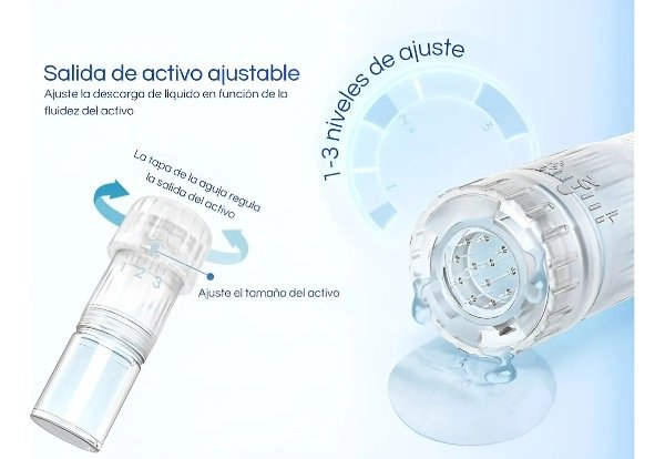 Ajuste de flujo de suero de 3 niveles: Personalice la aplicación del suero para diferentes tipos de piel y tratamientos fácilmente.